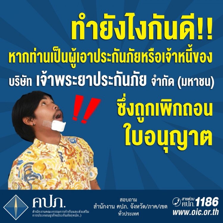 คปภ.แชร์สะพัดโลกโซเชียลฯ เตือนปชช."ทำยังไงดี?หากเป็นเจ้าหนี้"เจ้าพระยาประกันภัย"ที่ถูกสั่งปิด