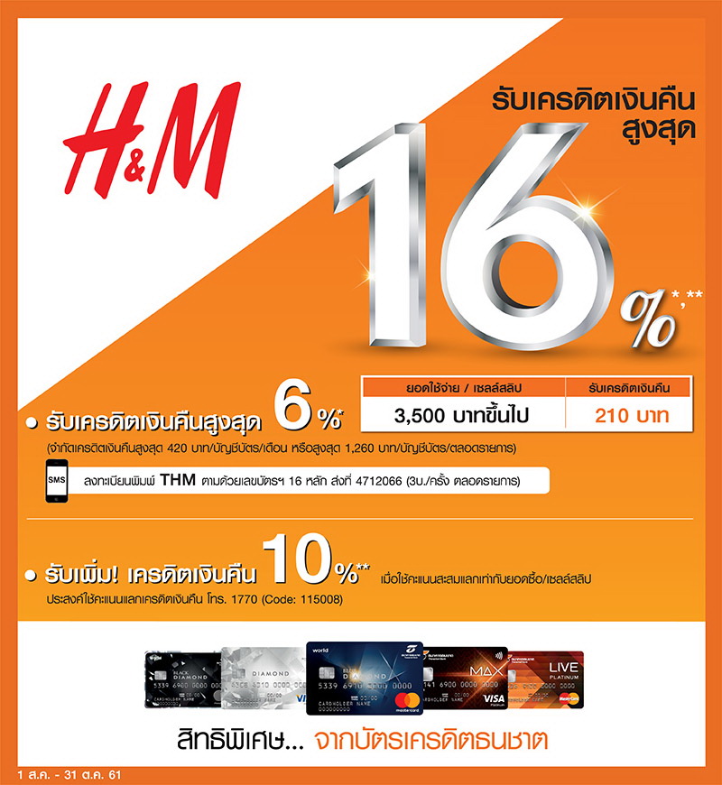 ลูกค้าบัตรเครดิตธนชาต ช้อปแฟชั่นให้เริ่ด รับเครดิตเงินคืนสูงสุด 16% ที่ H&M ทุกสาขา
