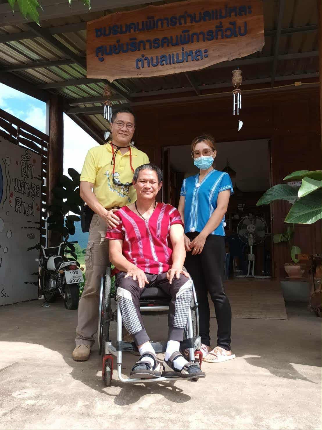 บางฤดูฝน ทางเดินบนเขากลายสภาพเป็นดินเปียกอ่อน ล้อหน้าของวีลแชร์จมลงพื้น เพื่อนผู้พิการในทีมจะใช้วิธีผูกเชือกเข้ากับสองแกนของล้อหน้าวีลแชร์ ฉุดลากกันขึ้นดอยไปทำงาน