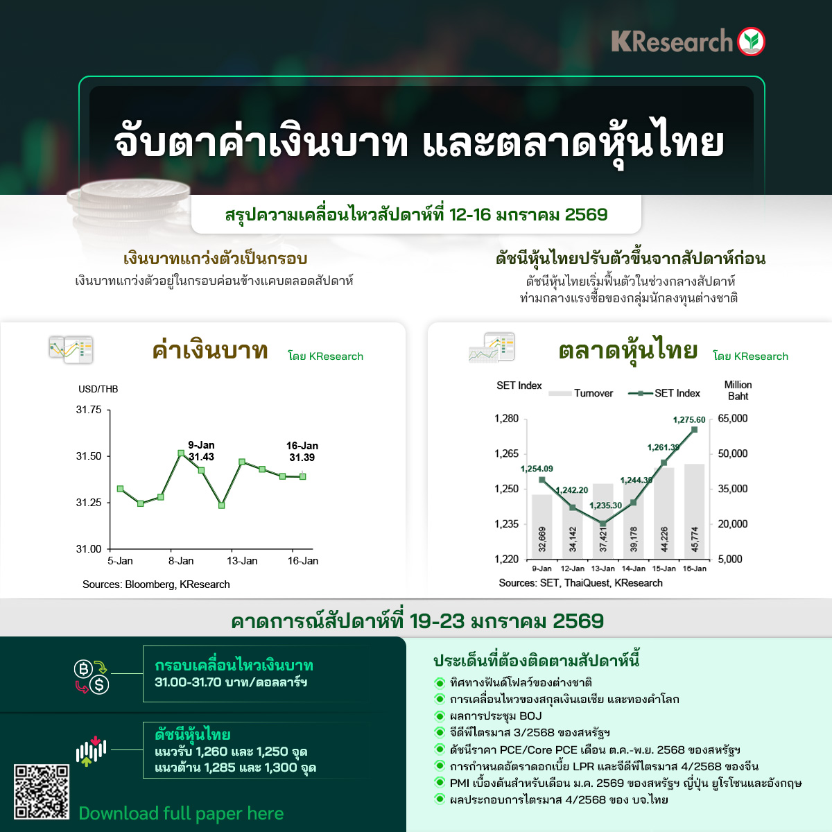 ศูนย์วิจัยกสิกรไทย สรุป ค่าเงินบาท และตลาดหุ้นไทย (สัปดาห์ที่ 12-16 ม.ค. 69) (3)