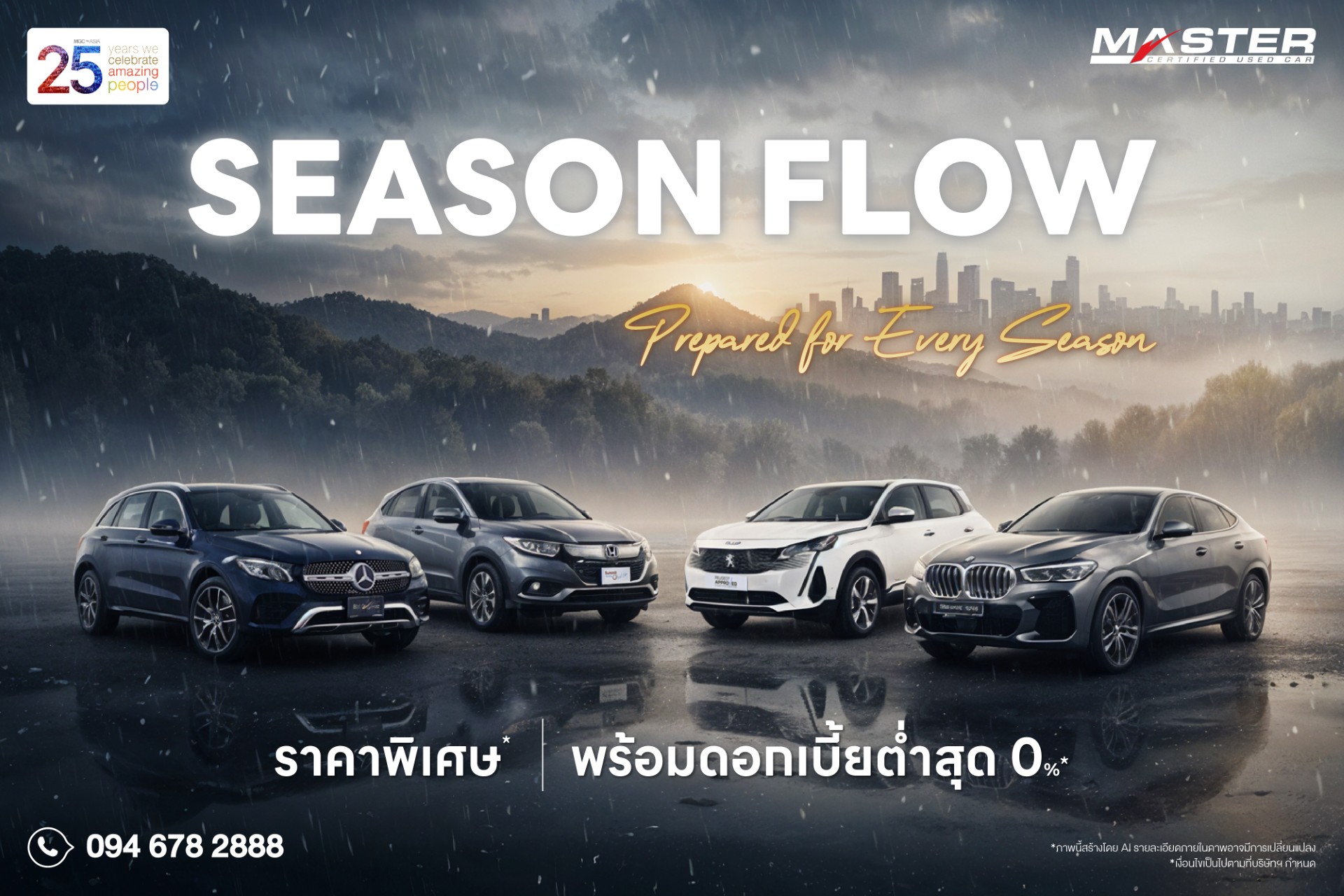 มั่นใจทุกการเดินทาง! มาสเตอร์ เซอร์ทิฟายด์ ยูสคาร์ ชูแคมเปญ ‘SEASON FLOW’ ยกทัพรถมือสองพรีเมียม กว่า 300 คัน จัดแสดงพร้อมจำหน่าย ดอกเบี้ยต่ำสุด 0% พร้อมสิทธิพิเศษ ตลอดเดือนตุลาคม 2568