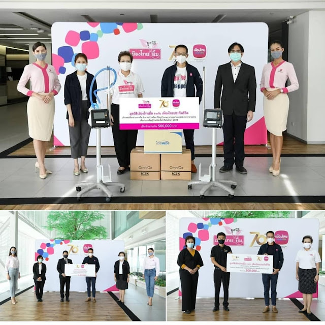 โดยล่าสุดเมืองไทยประกันชีวิต ร่วมกับมูลนิธิเมืองไทยยิ้ม มอบเครื่องช่วยหายใจจำนวน 12 เครื่อง เป็นจำนวนเงิน 2,700,000 บาท ให้แก่โรงพยาบาลทั้ง 6 แห่ง ได้แก่ โรงพยาบาลจุฬาลงกรณ์ สภากาชาดไทย โรงพยาบาลตำรวจ โรงพยาบาลพระมงกุฎเกล้า โรงพยาบาลราชวิถี โรงพยาบาลเจริญกรุงประชารักษ์ และโรงพยาบาลมหาราชนครเชียงใหม่ เพื่อนำไปช่วยเหลือผู้ป่วยติดเชื้อไวรัสโคโรนา 2019 (COVID-19)