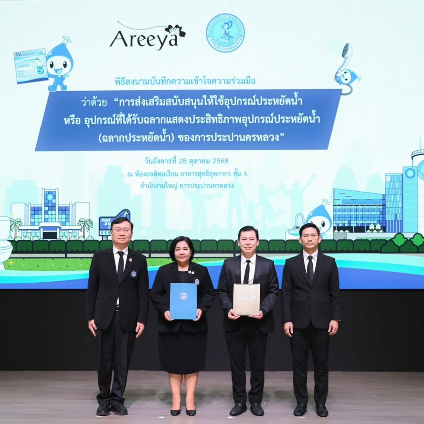 เมื่อวันที่ 28 ตุลาคม 2568 เวลา 10.30 น. ณ ห้องออดิทอเรียม ชั้น 5 อาคารสุทธิอุทกากร การประปานครหลวง (กปน.) สำนักงานใหญ่ นางสาวสุวรา ทวิชศรี ผู้ว่าการ กปน. พร้อมด้วย นายสุเทพ เอื้อปกรณ์ รองผู้ว่าการ (บริการด้านตะวันตก) รักษาการในตำแหน่ง รองผู้ว่าการ (บริการด้านตะวันออก) ในฐานะพยาน นายอาชวัน เอี่ยมไพบูลย์พันธ์ กรรมการบริหารและรองกรรมการผู้จัดการ บริษัท อารียา พรอพเพอร์ตี้ จำกัด (มหาชน) และบริษัทในเครือ ร่วมลงนามบันทึกความเข้าใจความร่วมมือ (MOU) ว่าด้วยการส่งเสริมสนับสนุนให้ใช้อุปกรณ์ประหยัดน้ำ หรืออุปกรณ์ที่ได้รับฉลากแสดงประสิทธิภาพอุปกรณ์ประหยัดน้ำ (ฉลากประหยัดน้ำ) ของการประปานครหลวง เพื่อสร้างความร่วมมือระหว่างภาครัฐและภาคเอกชนในการสนับสนุนการใช้น้ำอย่างรู้คุณค่าและร่วมอนุรักษ์ทรัพยากรน้ำให้มีใช้อย่างเพียงพอและยั่งยืน