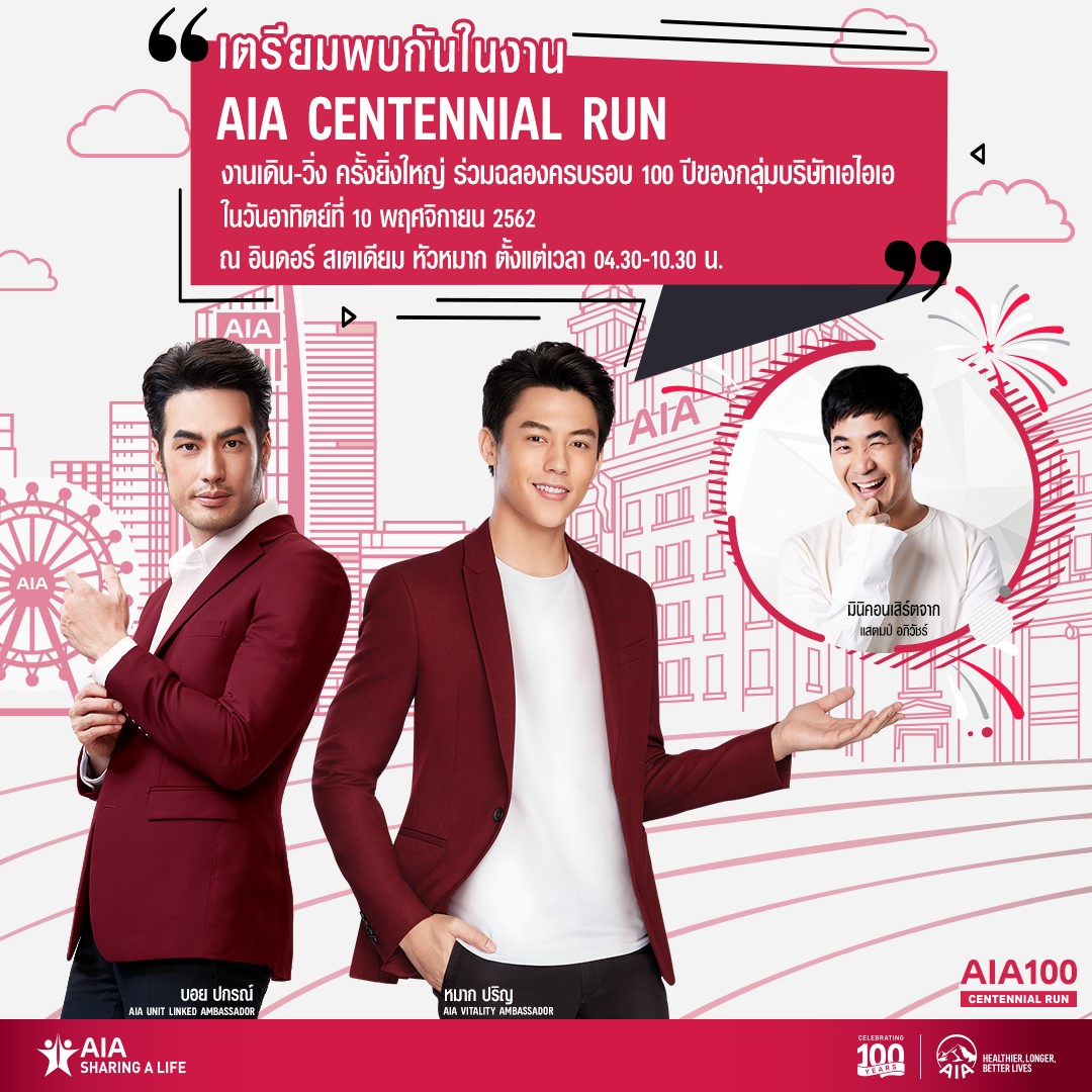 เตรียมนับถอยหลัง!! กับงานเดิน-วิ่งครั้งยิ่งใหญ่ “AIA Centennial Run” เพื่อร่วมฉลองครบรอบ 100 ปี กลุ่มบริษัทเอไอเอ