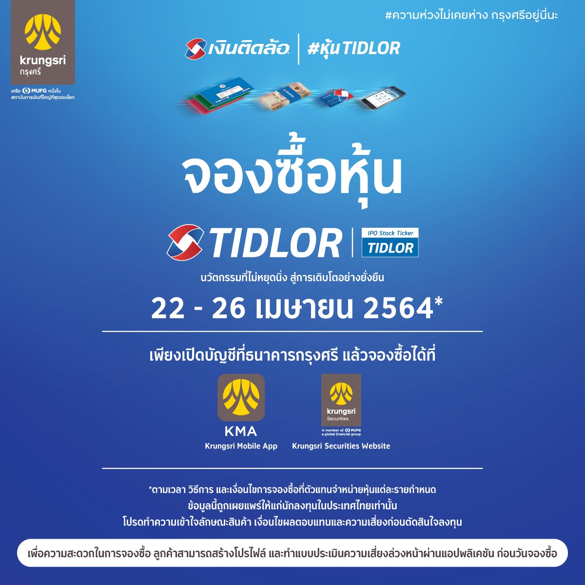 กรุงศรี เปิดจองซื้อหุ้น TIDLOR ผ่านกรุงศรี โมบาย แอปพลิเคชัน (KMA)