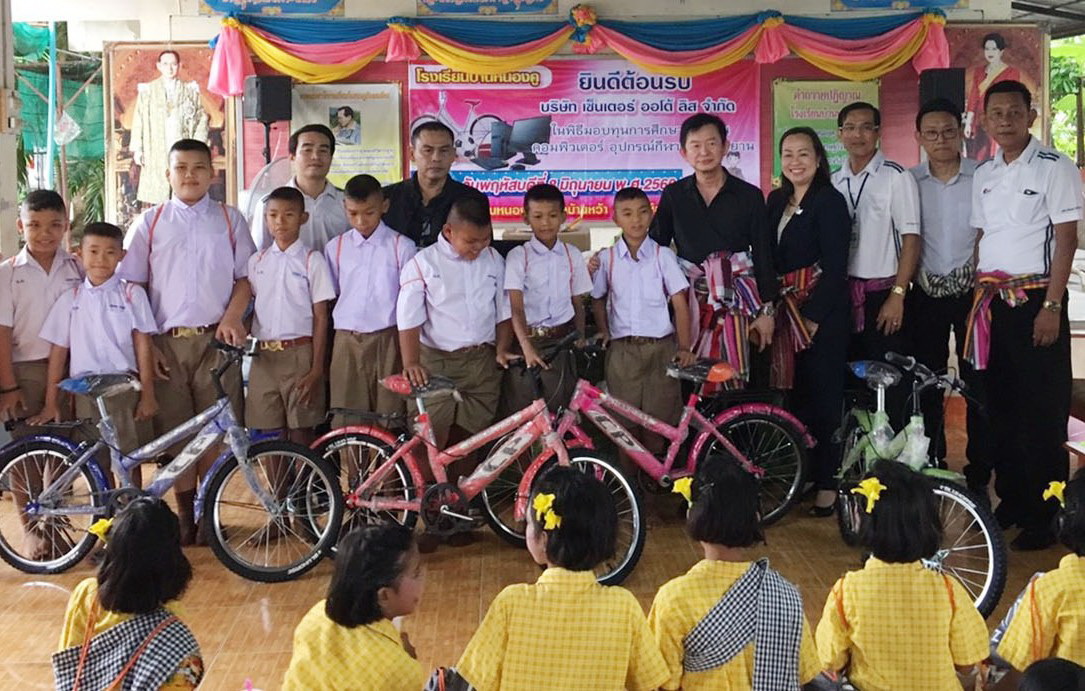 คุณจันทร์รุ่ง ศรีตระกูลช่าง (คนที่ 4 จากขวา) ผู้อำนวยการอาวุโสฝ่ายพัฒนาธุรกิจสถาบัน บริษัท เอฟดับบลิวดี ประกันชีวิต จำกัด (มหาชน) และ คุณวิสิทธิ์ พึ่งพรสวรรค์ (คนที่ 5 จากขวา) กรรมการผู้จัดการ บริษัท เซ็นเตอร์ ออโต้ ลีส จำกัด พร้อมคณะผู้บริหาร พนักงานจิตอาสา ร่วมกันจัดกิจกรรมเพื่อสังคม “มอบทุนการศึกษาให้แก่นักเรียนในถิ่นทุรกันดาร” เพื่อส่งเสริมการศึกษาให้แก่เด็กนักเรียนที่ยากไร้ และด้อยโอกาส โดยได้มอบทุนการศึกษาจำนวน 10 ทุน รถจักรยาน 9 คัน คอมพิวเตอร์ 10 เครื่อง และอุปกรณ์กีฬาหลายชนิด ณ โรงเรียนหนองคู จ.ขอนแก่น