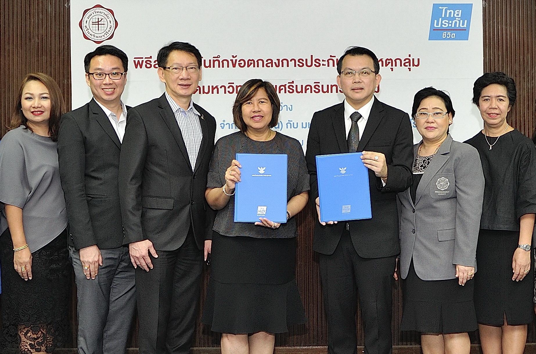 นางมนวดี เปี่ยมมงคล ผู้อำนวยการฝ่าย บริษัท ไทยประกันชีวิต จำกัด (มหาชน) และ รศ.นพ.โอฬาร พรหมลิขิต รองอธิการบดีฝ่ายพัฒนาศักยภาพนิสิต มหาวิทยาลัยศรีนครินทร วิโรฒ ร่วมลงนามต่อสัญญาประกันอุบัติเหตุกลุ่ม ให้แก่นิสิตมหาวิทยาลัยศรีนครินทรวิโรฒ จำนวน 21,591 คน ทุนประกันรวม 2,590,920,000 บาท ณ อาคารสำนักงานอธิการบดี มหาวิทยาลัยศรีนครินทรวิโรฒ ประสานมิตร