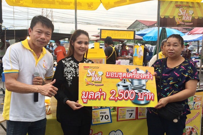 นางสาวณิชรัตน์ ชำนาญกิจ (ที่ 2 จากซ้าย) รองผู้อำนวยการฝ่ายการตลาด บริษัท โรงงานผลิตภัณฑ์อาหารไทย จำกัด ผู้ผลิตและจัดจำหน่าย ผงปรุงสำเร็จตรา “รสเด็ด" มอบโชคชุดเครื่องครัว แสตนเลส มูลค่า 2,500 บาท ให้แก่ นางอรุณี ประสิทธิเดช ผู้โชคดีท่านที่ 3 จากกิจกรรมโรดโชว์ผลิตภัณฑ์ผงปรุงสำเร็จตรารสเด็ด เพียงซื้อผลิตภัณฑ์ ตรารสเด็ด รสชาติใดก็ได้ ครบ 50 บาท รับฟรีคูปอง 1 ใบ เพื่อลุ้นรับรางวัลมากมาย ณ ตลาดนัดโคกช้าง อ.อุทัย จ.อยุธยา เมื่อเร็วๆ นี้