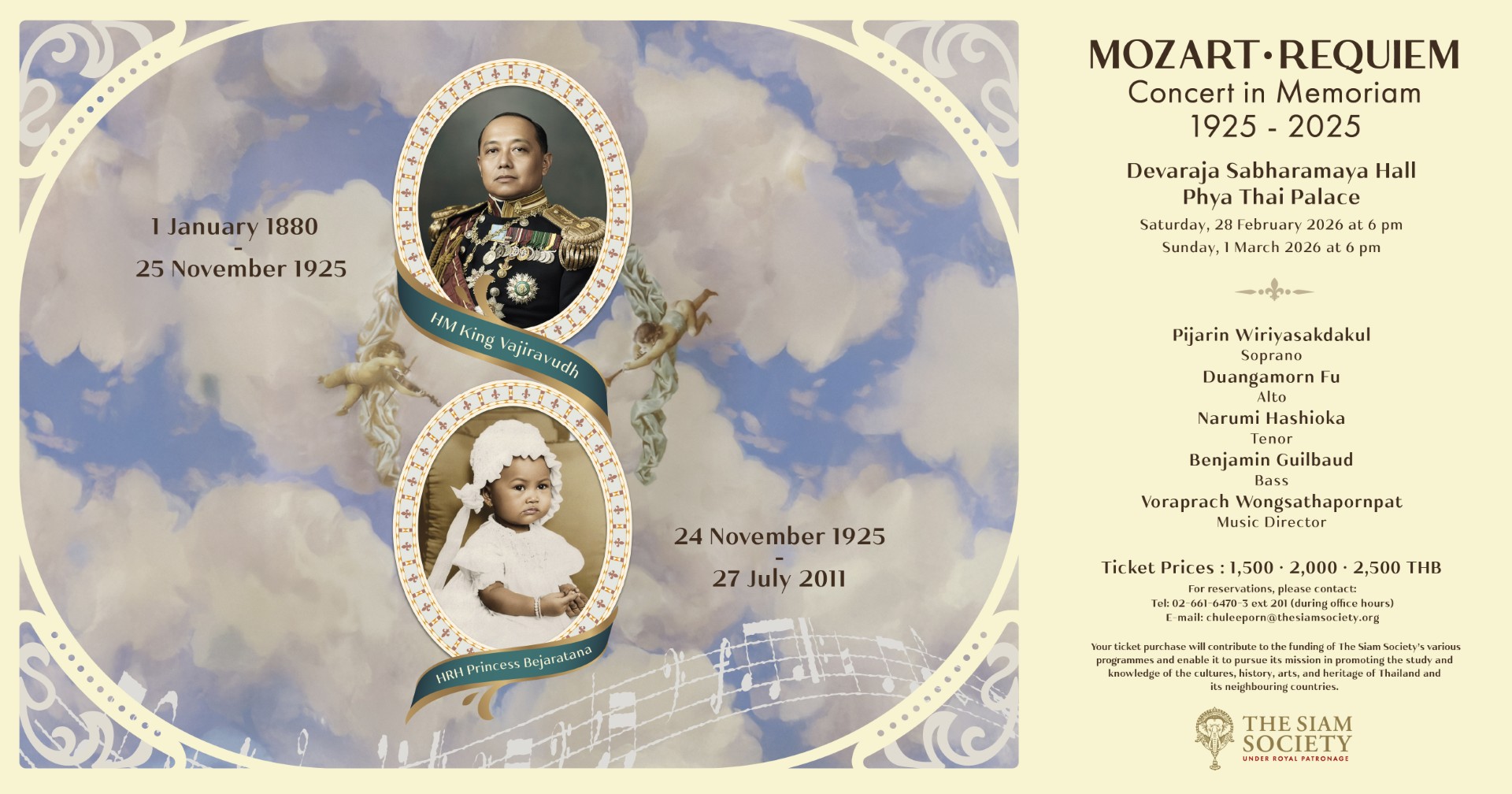 สยามสมาคมฯ เชิญชม คอนเสิร์ต “Mozart · Requiem: Concert in Memoriam 1925–2025”น้อมรำลึกในวาระครบ 100 ปี แห่งการสวรรคตของ ร.6 และประสูติกาลของมหาธีรราชธิดา