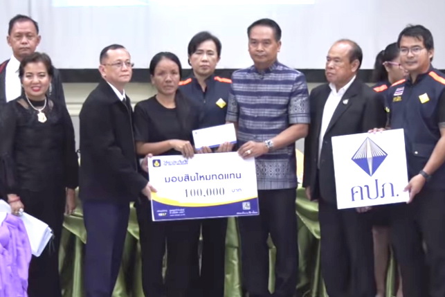 นายวัฒนา พุฒิชาติ ผู้ว่าราชการจังหวัดศรีสะเกษ ในฐานะประธานในพิธี ร่วมกับ นางพรพยงค์ บัวศรี รักษาการผู้อำนวยการสำนักงาน คปภ. ภาค 5 (จ.อุบลราชธานี) และ บริษัท วิริยะประกันภัย จำกัด (มหาชน) โดยมี นายสมชาย เกษมทวีศักดิ์ รองผู้จัดการฝ่ายปฏิบัติการภาค 2 (ภาคตะวันออกเฉียงเหนือ) เป็นผู้แทนบริษัทฯ ร่วมชี้แจงการช่วยเหลือผู้ประสบภัยในนามศูนย์ประสานงานการให้ความช่วยเหลือผู้ประสบอุบัติเหตุ และดำเนินพิธีการมอบสินไหมทดแทน ให้แก่ครอบครัวของของนักศึกษาวิทยาลัยเทคนิคศรีสะเกษที่ประสบอุบัติเหตุเสียชีวิต จากอุบัติเหตุรถกระบะเสียหลักพุ่งชนเสาไฟฟ้าและพลิกคว่ำ บริเวณถนนกิ่งแก้ว อำเภอบางพลี จังหวัดสมุทรปราการ โดยมี นายนิยม ศรีวิเศษ นายกสมาคมสถาบันการอาชีวศึกษาภาคตะวันออกเฉียงเหนือ, นายอักษรศิลป์ แก้วมหาวงศ์ ผู้อำนวยการวิทยาลัยเทคนิคศรีสะเกษ และหน่วยงานที่เกี่ยวข้องเข้าร่วมพิธี ณ ห้องประชุม T-VET วิทยาลัยเทคนิคศรีสะเกษ อำเภอเมือง จังหวัดศรีสะเกษ