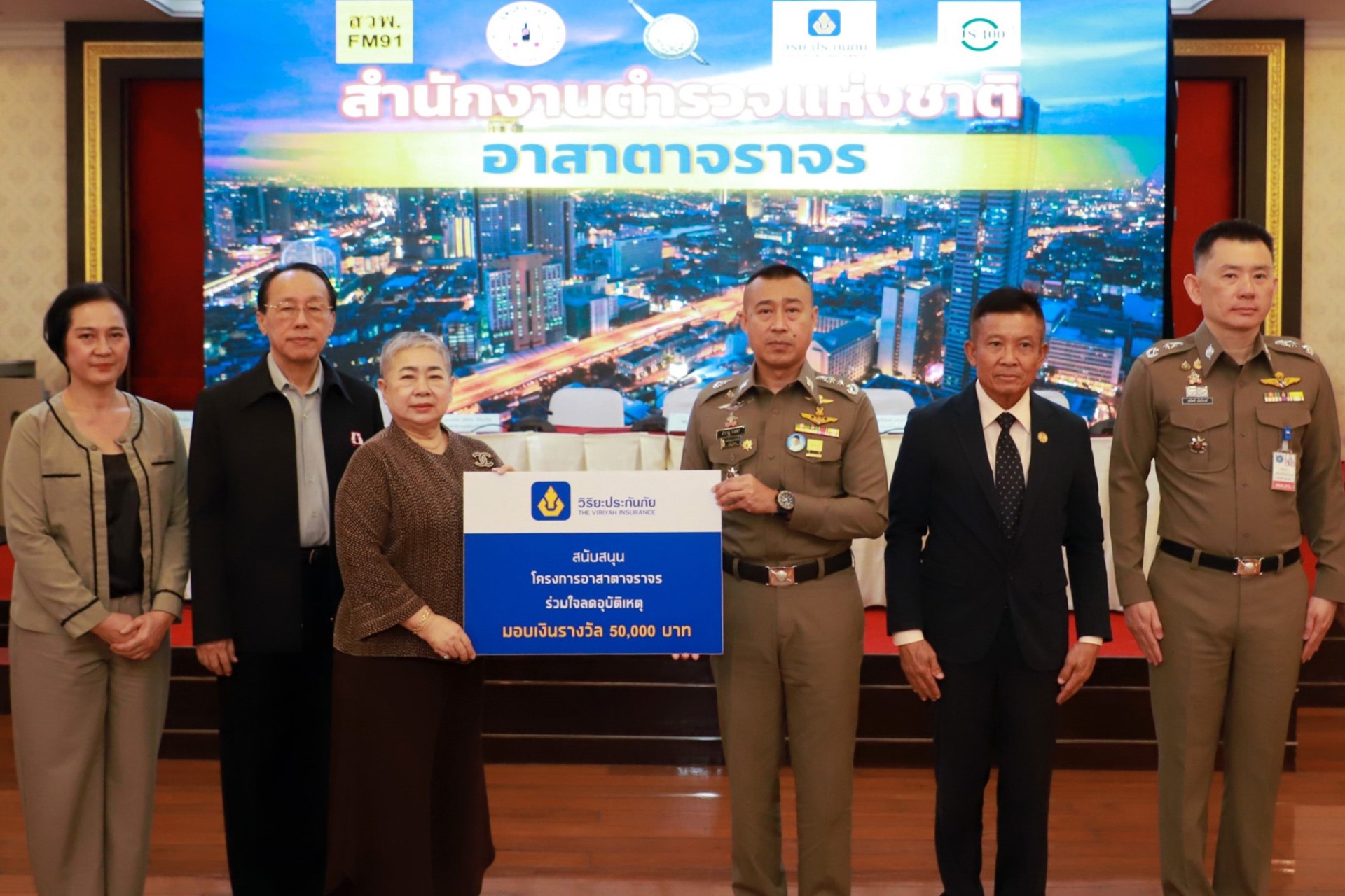 พล.ต.ท.สำราญ นวลมา ผู้ช่วยผู้บัญชาการตำรวจแห่งชาติ นางสาวกานดา วัฒนายิ่งสมสุข ที่ปรึกษาฝ่ายสื่อสารองค์กร บริษัท วิริยะประกันภัย จำกัด (มหาชน) นายแพทย์แท้จริง ศิริพานิช เลขาธิการมูลนิธิเมาไม่ขับ รวมทั้งภาคีเครือข่าย ทั้ง จส.100 และ สวพ.91 ร่วมแถลงผลการมอบรางวัลและใบประกาศเกียรติคุณ “โครงการอาสาตาจราจร” ประจำเดือนเมษายนและพฤษภาคม 2568 แก่เจ้าของคลิปที่บันทึกการทำผิดกฎจราจร ทั้งหมด 20 รางวัล รวมเป็นเงินจำนวนทั้งสิ้น 100,000 บาท เพื่อกระตุ้นให้ประชาชนตระหนักถึงความสำคัญของการเคารพกฎจราจร และเป็นพลเมืองตื่นรู้ที่มีส่วนสำคัญในการสร้างวัฒนธรรมความปลอดภัยบนท้องถนนอย่างเป็นรูปธรรม โดยพิธีมอบจัดขึ้น ณ ห้องสารสิน สำนักงานตำรวจแห่งชาติ แขวงปทุมวัน เขตปทุมวัน กรุงเทพฯ
