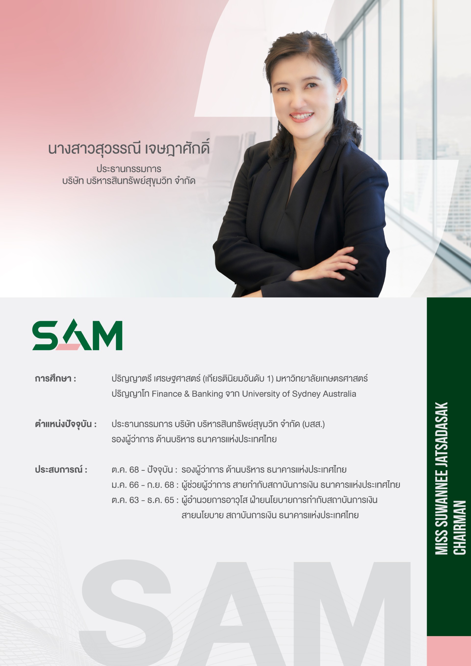 SAM ประกาศแต่งตั้ง “สุวรรณี เจษฎาศักดิ์” รองผู้ว่าการ ธปท.