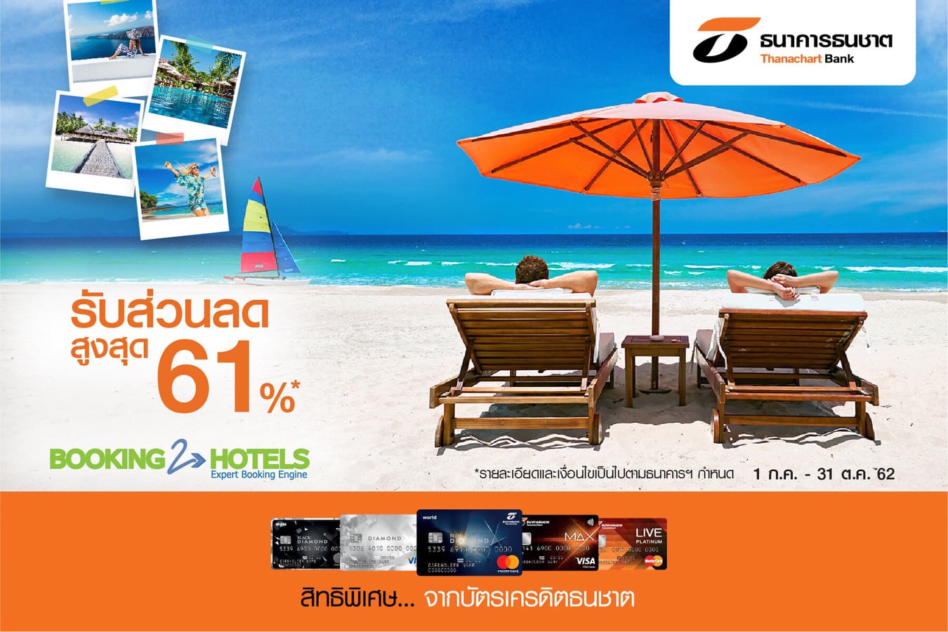 เหนื่อยนัก ก็พักก่อน! ลูกค้าบัตรเครดิตธนชาตรับสิทธิพิเศษ จองห้องพัก-ที่เที่ยว ในเว็บไซต์ Booking2Hotels รับส่วนลดสูงสุด 61%