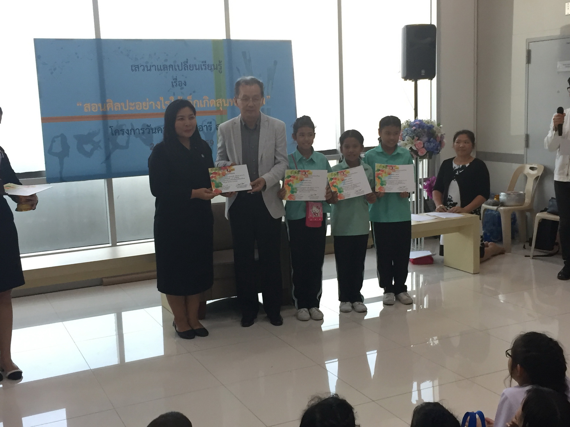 ผศ.ดร.ระวิวรรณ วรรณวิไชย คณบดีคณะศิลปกรรมศาสตร์ มศว กล่าวว่า “ครูอารีคือผู้วางรากฐานศิลปศึกษาให้กับประเทศไทยและเป็นบรมครูศิลปะที่มีบทบาทในการบุกเบิกวิชาการศิลปศึกษาและก่อตั้งคณะศิลปกรรมศาสตร์ มศว กิจกรรมการประกวดวาดภาพที่เลือกเด็ก 3 กลุ่มวัยนี้ก็เพื่อต้องการให้เห็นว่าศิลปะเกิดจากจินตนาการที่ไม่มีที่สิ้นสุด เด็กคือผู้ที่มีจินตนาการ มีความคิดสร้างสรรค์ ผลงานศิลปะของเขาจะช่วยกล่อมเกลาจิตใจ อารมณ์ ศิลปะยังเป็นเครื่องมือในการบำบัดเยียวยาผู้ที่ตกอยู่ในสภาพจิตใจย่ำแย่หดหู่แม้แต่ผู้ต้องขัง ผู้พิการ ผู้มีความบกพร่องด้านต่างๆ ในลักษณะของศิลปะบำบัด ซึ่งปัจจุบันศิลปะได้เข้าไปมีอิทธิพลบทบาทมากในหลายด้านของการใช้ชีวิตได้อย่างมีความสุข ครูอารีคือครูสอนศิลปะที่ยึดเด็กเป็นศูนย์กลาง ให้อิสระทางความคิดเพราะครูเชื่อว่าคนเป็นครูนั้น ให้ความรักศิษย์ได้ ให้ความคิดไม่ได้ แต่สอนให้คิดได้ งานครั้งนี้มิใช่เพียงแค่การแสดงมุทิตาจิตต่อบรมครูศิลปะอารี สุทธิพันธุ์ ในวัย 86 ปีวันนี้ แต่เป็นการทำให้รู้ว่าศิลปะคือเครื่องมือสื่อสารที่มีไว้เพื่อสร้างสังคม ศิลปินก็ต้องทำงานเพื่อสังคมส่วนรวมเฉกเช่นที่ครูอารีทำมาตลอด ท่านจึงเป็นครูศิลปะเพื่อสังคมโดยแท้จริง”
