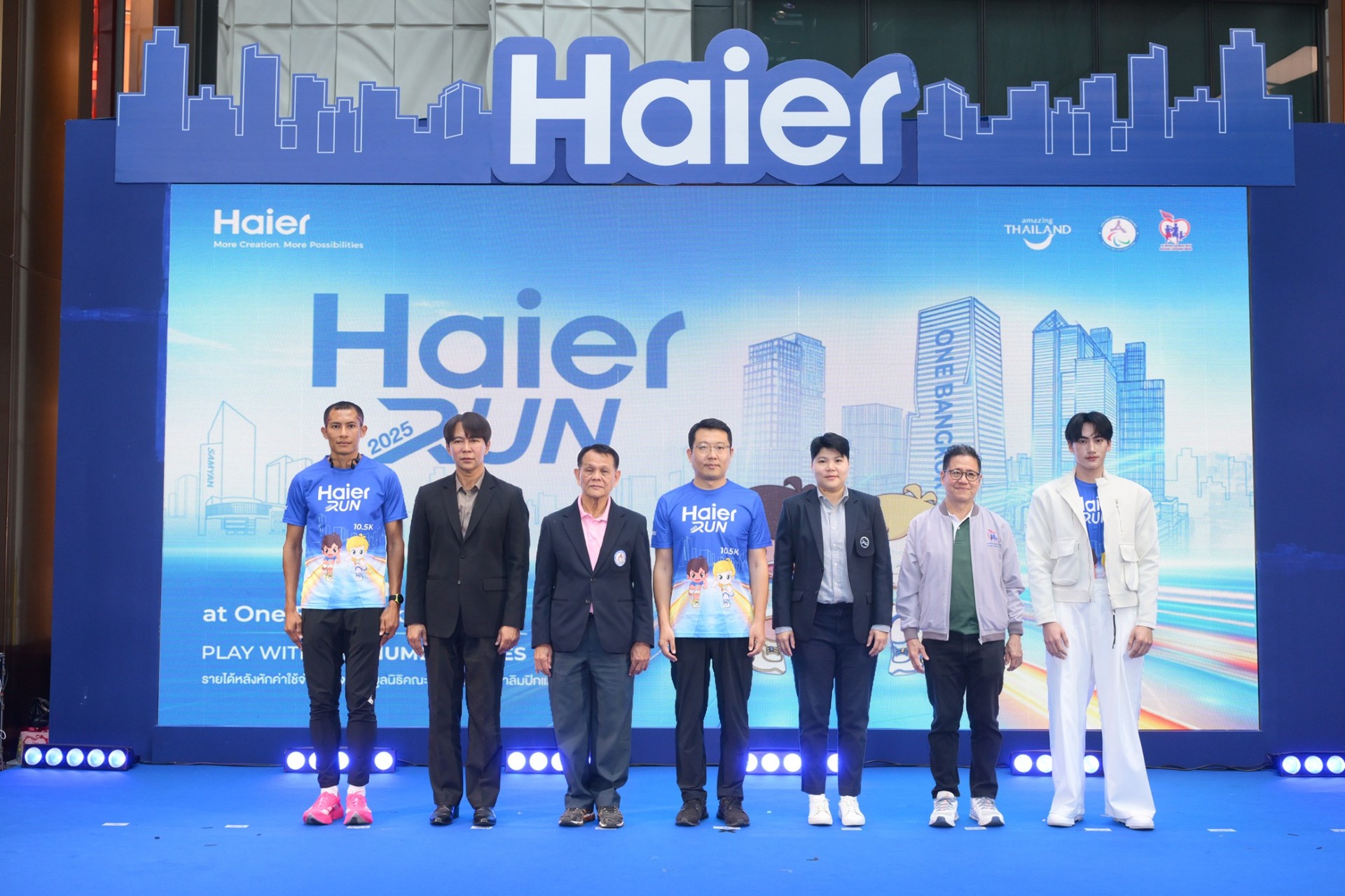 กรุงเทพฯ 3 ตุลาคม 2568 – มร. ต่ง เจี้ยนผิง ประธานกรรมการบริหาร บริษัท ไฮเออร์ อีเลคทริคอล แอพพลายแอนซ์ (ประเทศไทย) จำกัด (ที่ 4 จากซ้าย) พร้อมด้วย พลตรี โอสถ ภาวิไล เลขาธิการคณะกรรมการ สมาพันธ์กีฬาพาราลิมปิกแห่งประเทศไทย (ที่ 3 จากซ้าย) และ นางสาวอัจฉรา สิทธิองอาจ หัวหน้างานกลยุทธ์ประชาสัมพันธ์ในประเทศ การท่องเที่ยวแห่งประเทศไทย (ที่ 5 จากซ้าย) ร่วมงานแถลงข่าวเปิดตัวงานวิ่งแห่งปี “Haier Run 2025” ที่จัดขึ้นต่อเนื่องเป็นปีที่ 6 ภายใต้คอนเซ็ปต์ “PLAY WITH THE NUMBER ONES” มินิมาราธอนสุดยิ่งใหญ่บนเส้นทางไอคอนิคใจกลางกรุงเทพฯ ย่านวิทยุ–พระราม 4 ในวันที่ 12 ตุลาคม 2568 โดยการแข่งขันเปิดรับสมัคร 2 ระยะทาง ได้แก่ ฟันรัน 5 กิโลเมตร และ มินิมาราธอน 10.5 กิโลเมตร ซึ่งรายได้หลังหักค่าใช้จ่ายทั้งหมดจะนำไปมอบให้แก่มูลนิธิคณะกรรมการพาราลิมปิกแห่งประเทศไทย ณ วัน แบงค็อก (One Bangkok) เมื่อเร็ว ๆ นี้